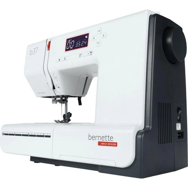 The bernette 37 is a compact computerised model with simple operation and robust construction. It has many functions, such as the practical start/stop function that allows you to sew without using the foot pedal. You can also use the needle stop up/down function to decide whether the needle should stop in the fabric or up above it. This is a particular advantage when you want to sew corners and turn the fabric around the needle. With the bernette 37 you can also adjust the sewing speed to suit your individual requirements and the type of material. The bright LED light helps ensure that your work surface is always well lit. The bernette 37 is delivered with 5 presser feet (soles).- 50 stitches, including decorative and quilting stitches